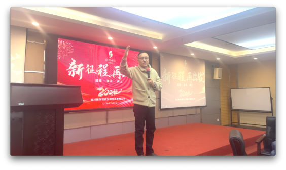 市場(chǎng)部朱進(jìn)強(qiáng)先生致辭,代表市場(chǎng)部將士們吹響2024新的號(hào)角。